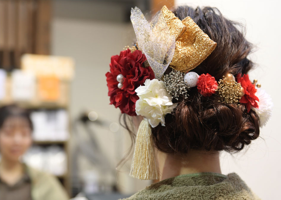 また、式などのヘアセットや着付けなども承ります。